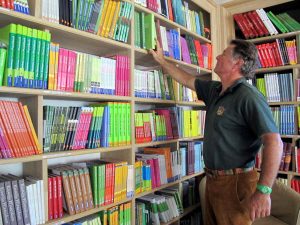 - …liest in seiner umfangreichen Bibliothek mit Gartenliteratur.