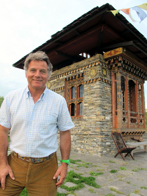 Im Grünen genießen… (Das nimmt man dem Umtriebigen aber in der Praxis nicht recht ab.) Oder beim Sonnenuntergang am buddhistischen Tempel sitzen und über den Landschaftspark schauen und überlegen, was man wo noch verändern könnte.
