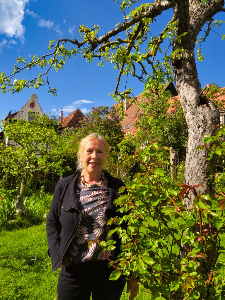 Vom Treiben in den Altstadtgassen bekommt Regina Fleming in ihrem Garten nicht viel mit. Das großzügige Areal ist eingefriedet und garantiert Ruhe. Eine gut 30 Meter lange doppelte Buchshecke teilt das Gelände: auf der einen Seite das uralte Gartenhaus mit originalen Butzenscheiben und zwei ehrwürdige Eiben davor und auf der anderen Seite die Rasenfläche mit Teich und Sonnenterrasse.